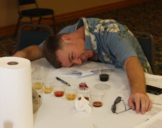 - Chris McCall – Chris is the head brewer/Owner at the Cocoa Beach Brewing Company who has not only agreed to brew the BoS Beer commercially at his place, but also came out to help judge Rocket Fuel. Due to a small scheduling conflict he ended up doing two small flights before lunch, but then sat down with the rest of the panel for a flight of eleven (11) high octane rocket fuel entries. It was grueling, but he made it through…. barely…