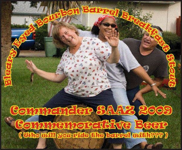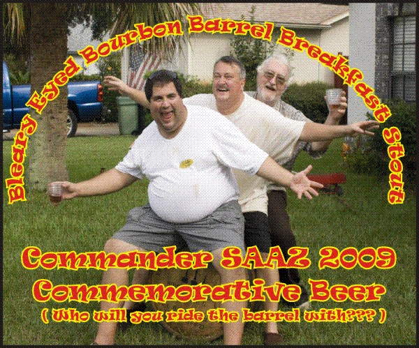 ) - Ron and Paula Sup – Ron and Paula did SOOOOO many things and are always there to help out. Ron was also responsible for creating and nurturing this year’s Commander SAAZ commemorative beer, Bleary Eyed Bourbon Barrel Breakfast Stout (Yummy!). They also judged, made hop masks for the judges, dressed up in funny costumes for the Splashdown Party. Wow, what a great couple of folks to have around!